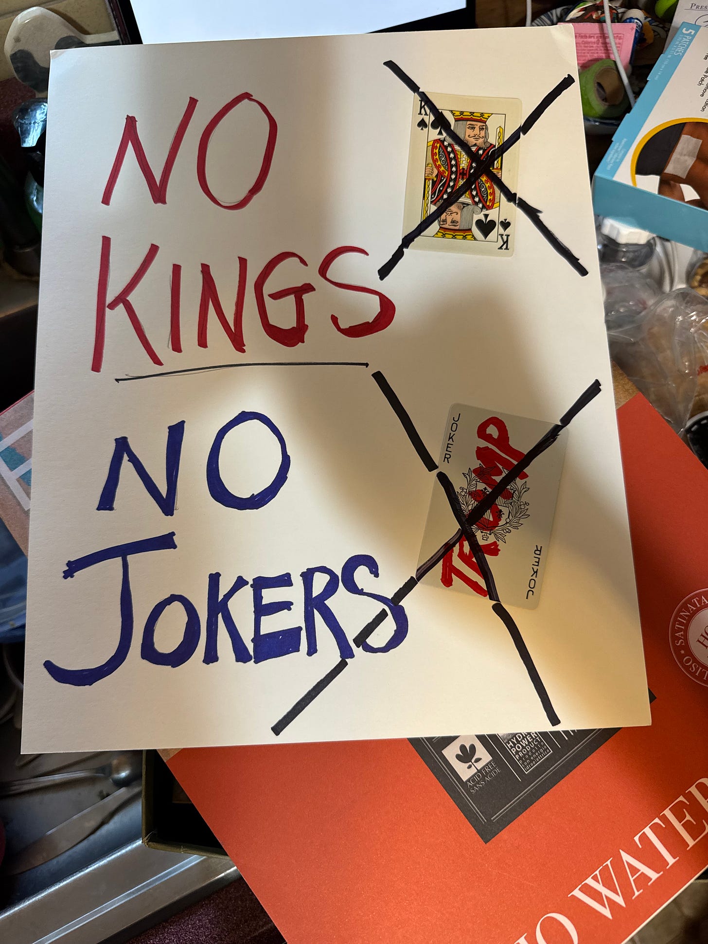 These sign ideas were shared by community members ahead of No Kings to our recent Substack community chat thread. If you’re making a sign and need inspiration, start here.