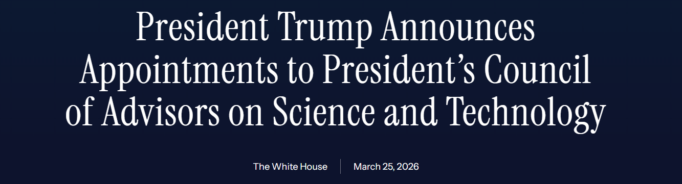 White House (March 25, 2026) | President Trump Announces Appointments to PCAST
