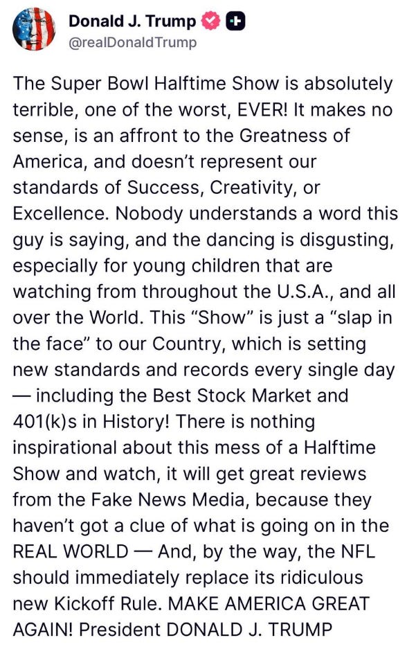 The Super Bowl, mass culture at its biggest ended with a halftime show that centered Puerto Rican identity and Spanish-language music on the largest stage in U.S. sports. And political news cycle dominated by questions of accountability, official communications, public institutions, and whether the checks and balances of professional government are being deliberately weakened.