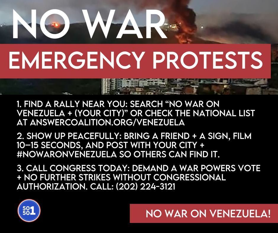 Script: “Hi, I’m calling from ZIP _____. I’m concerned about U.S. military action involving Venezuela. I want Congress to hold a War Powers vote and require a public briefing on the legal authority, objectives, and limits. What is the Senator/Representative’s position?”