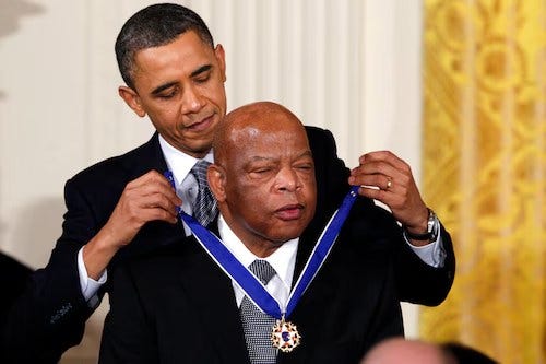As Obama said, in 2011, when he awarded Lewis the Presidential Medal of Freedom, “Generations from now, when parents teach their children what is meant by courage, the story of John Lewis will come to mind — an American who knew that change could not wait for some other person or some other time; whose life is a lesson in the fierce urgency of now.”