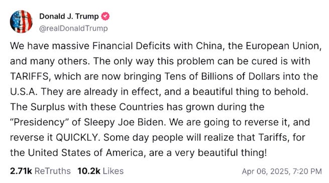 April 2â9 â Trump conducted international trade policy through Truth Social mood swings.