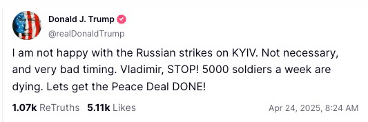 After a Russian strike near Kyiv, Trump posted âVladimir, STOP!â and tried to spin it as tough love toward Putin, undermining traditional diplomacy with an all-caps social media plea. Foreign-policy experts in The Atlantic and Brookings noted the unseriousness and potential danger of this approach.