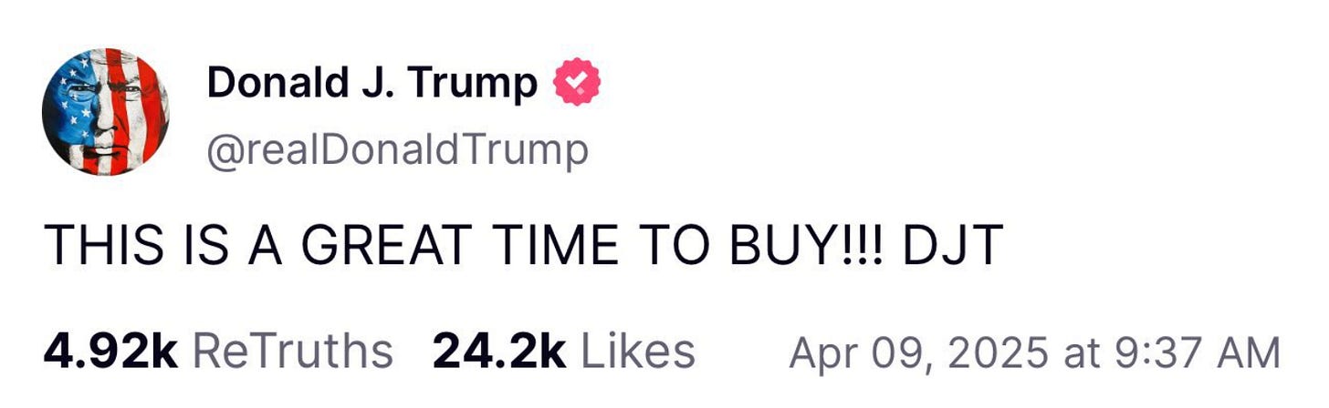 Bloomberg â âTrumpâs midnight tariff posts spark worst volatility since 2008â The Washington PostDJT post â âThis is a great time to buy!!!â and stock spike