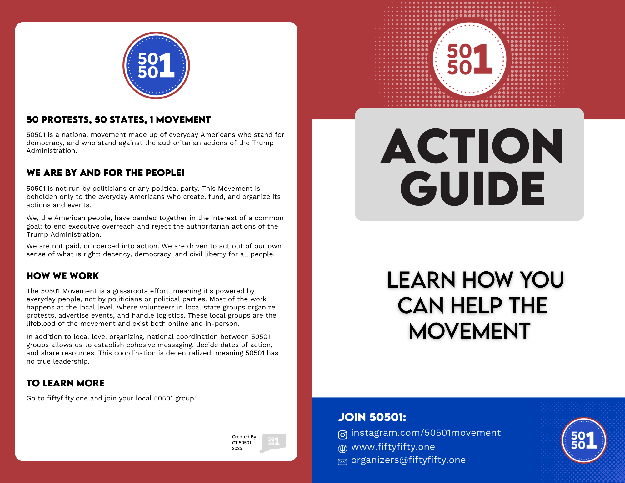 Here is a useful and practical 50501 Action Guide created by CT 50501.