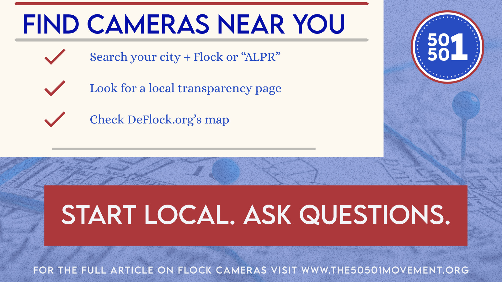 Communities that already have these systems and those deciding whether to install them should be pushing for no data sharing for immigration enforcement, no tracking of First Amendment activity, no cameras near places of worship, food banks, courts, clinics, or immigration facilities, short deletion windows, public audit logs, and real penalties when agencies violate the rules.
