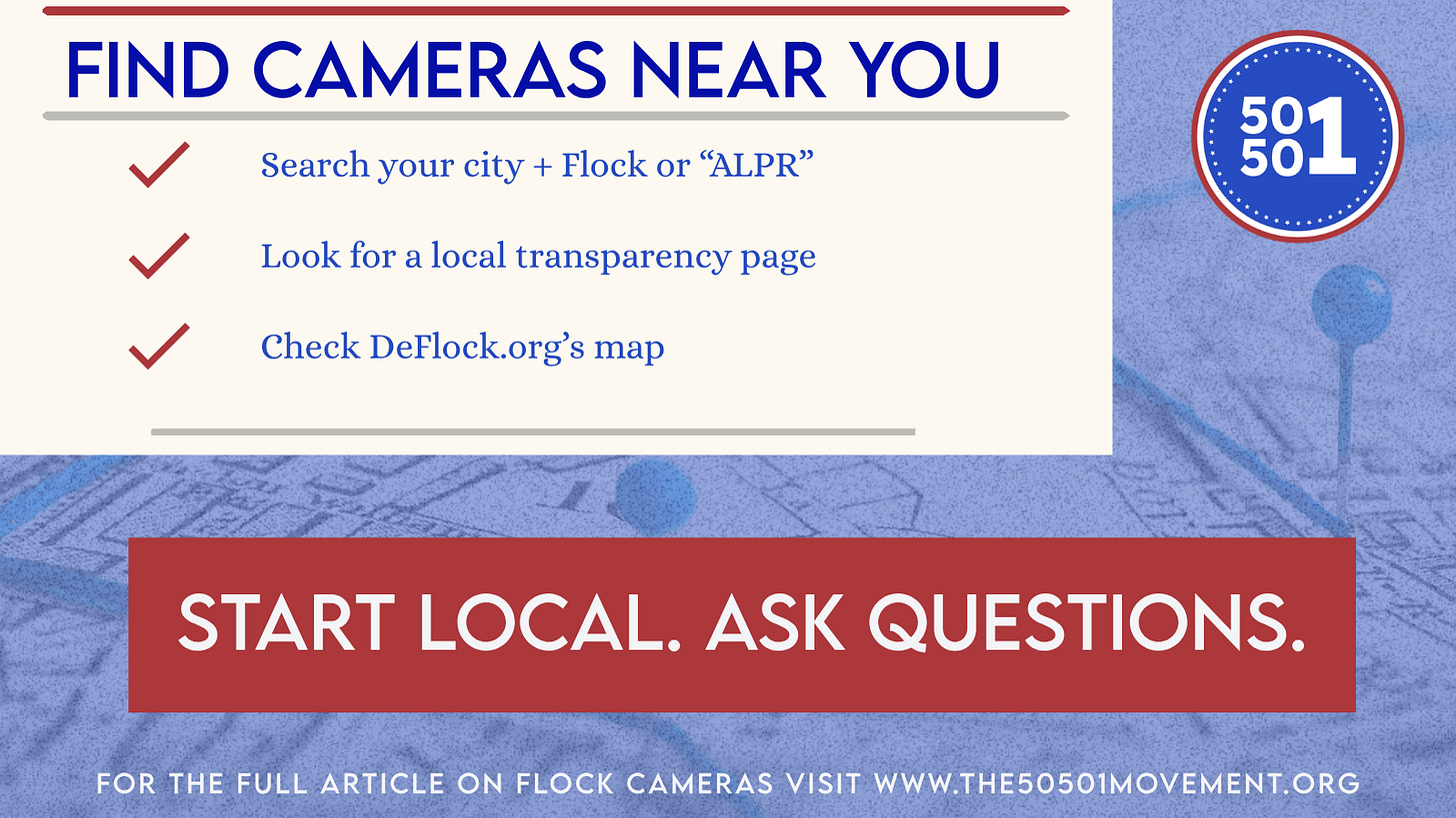 Contact your city council member and ask… Does the city have a contract with Flock or any ALPR vendor? Who is authorized to access the data? Is federal sharing enabled? What are the retention and audit policies? Those are reasonable questions and every resident deserves to know.